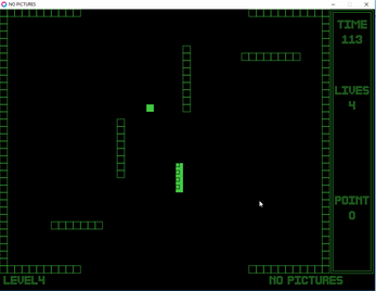 "NoPictures" et un jeu basé sur le fameux jeu "Snake" ...mais en vrai c’est un Alien perdu dans l'espace qui doit survivre et pour cela il doit attraper des souches de cellules et se nourrir et pouvoir évoluer ! :) ...bon d'accord c'est un "Snake" !